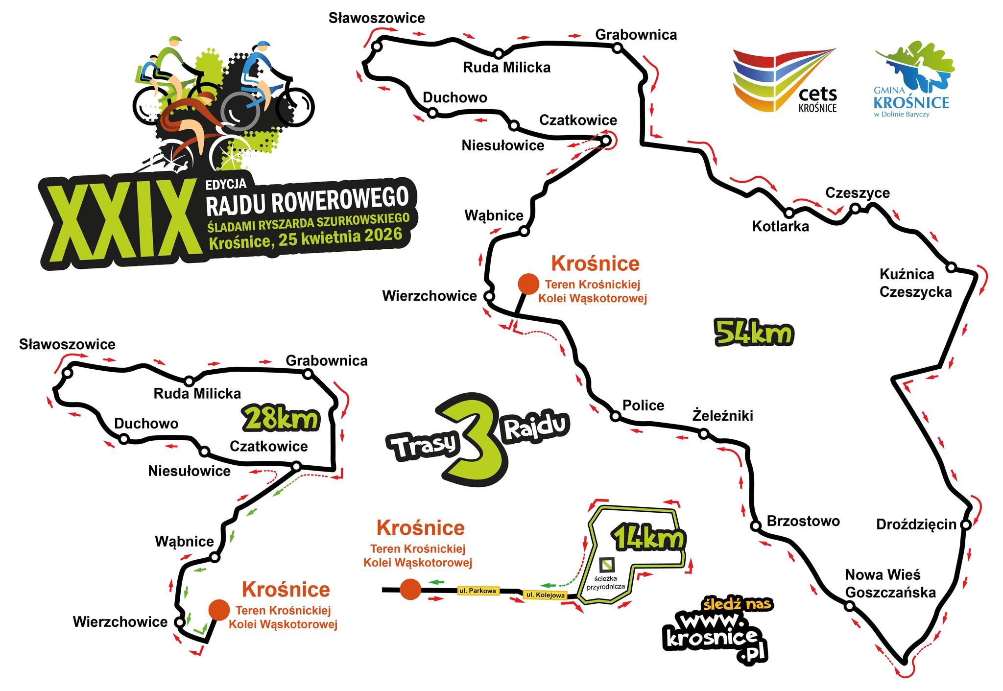 Organizatorzy (CETS Krośnice) przygotowali 3 trasy: